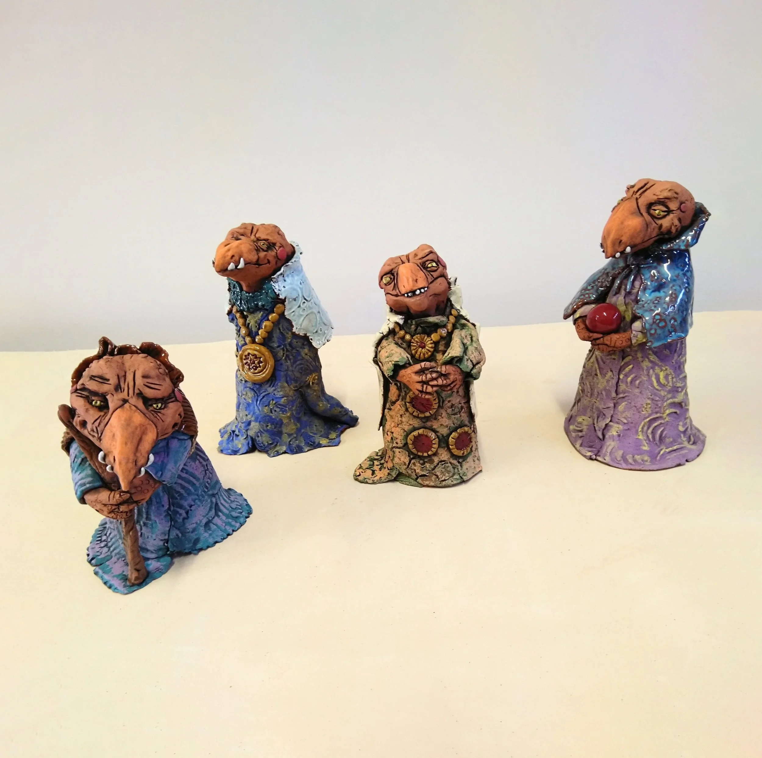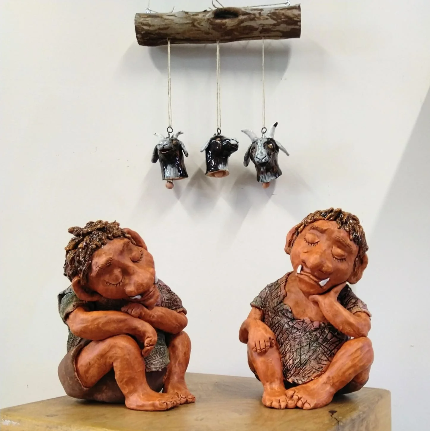 Sleeping trolls with goat heads, red earthenware clay with terra sigillata, cone 05